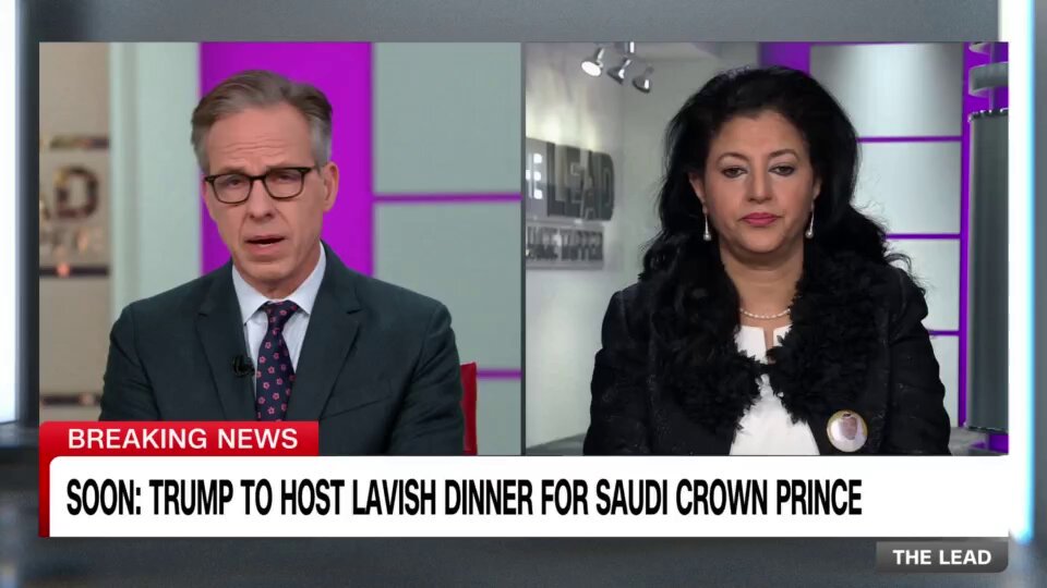 The statement addresses a significant public issue involving international relations, human rights, and political accountability. It highlights the reaction of Jamal Khashoggi's wife to a political event, which involves a former U.S. president and a foreign leader accused of human rights violations.