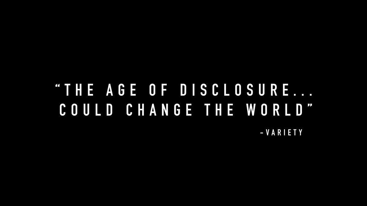 The statement is promotional, encouraging viewers to watch 'The Age of Disclosure' on Prime Video and in select theaters. It uses hyperbolic language to generate interest, suggesting the film is part of an important conversation. The image includes a quote from Variety, adding credibility and intrigue.