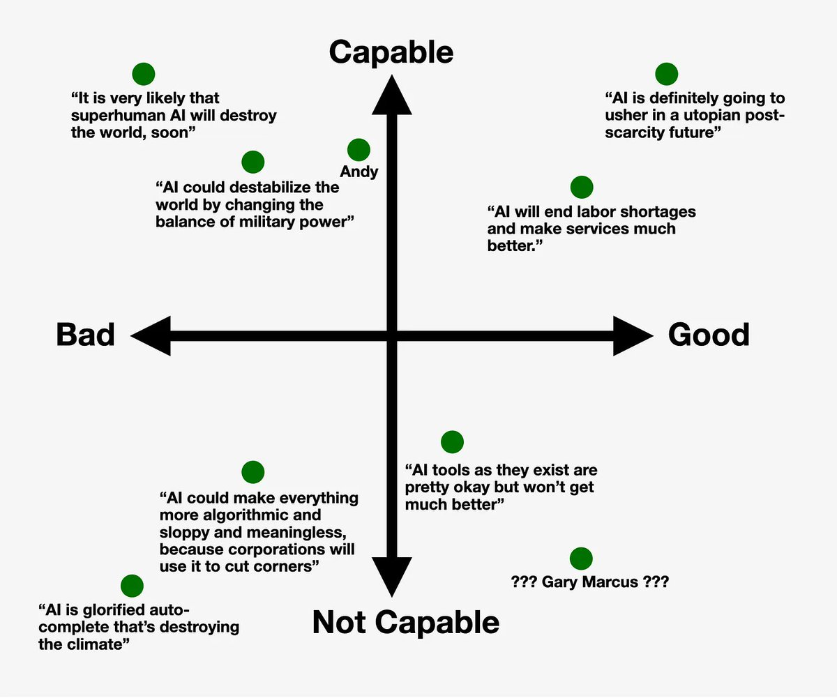 The statement engages in public discourse by discussing the capabilities and implications of current and future AI technologies. It acknowledges both positive and negative aspects, focusing on issues like reasoning, reliability, and hallucination in current AI models. The statement suggests that future AI might be more effective if it incorporates LLMs as components rather than the main focus.