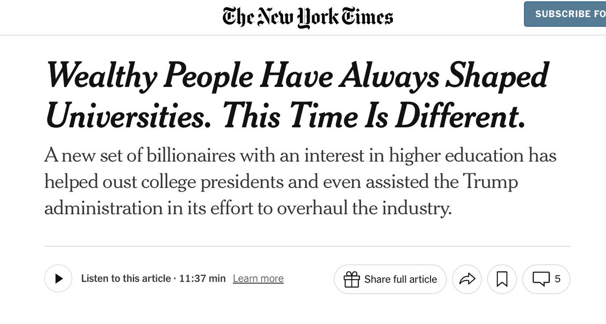 The statement critiques the impact of donations on higher education, suggesting that donors should demand reforms to address perceived issues. It implies that financial influence can drive positive change in universities.