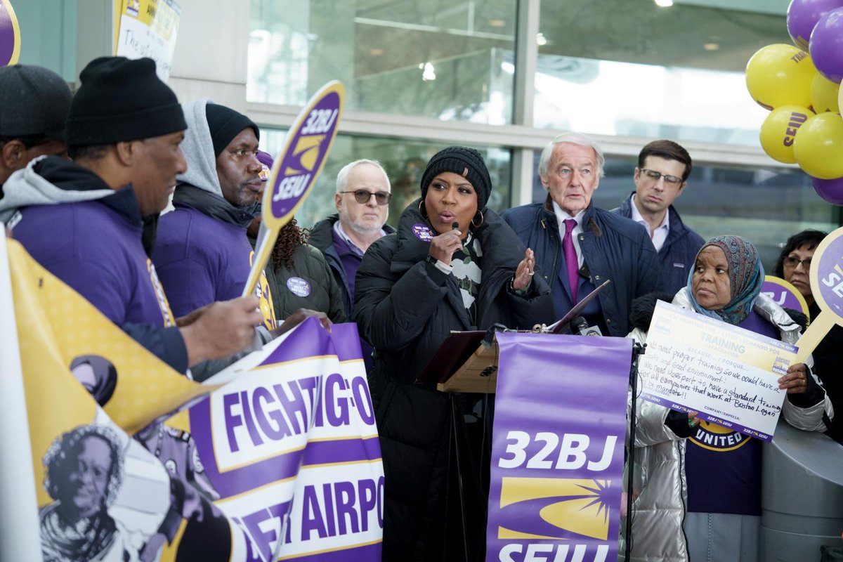 The statement celebrates a wage increase for workers at Logan Airport, highlighting the power of organized labor and expressing support from a Congresswoman. It emphasizes solidarity and advocacy for workers' rights.