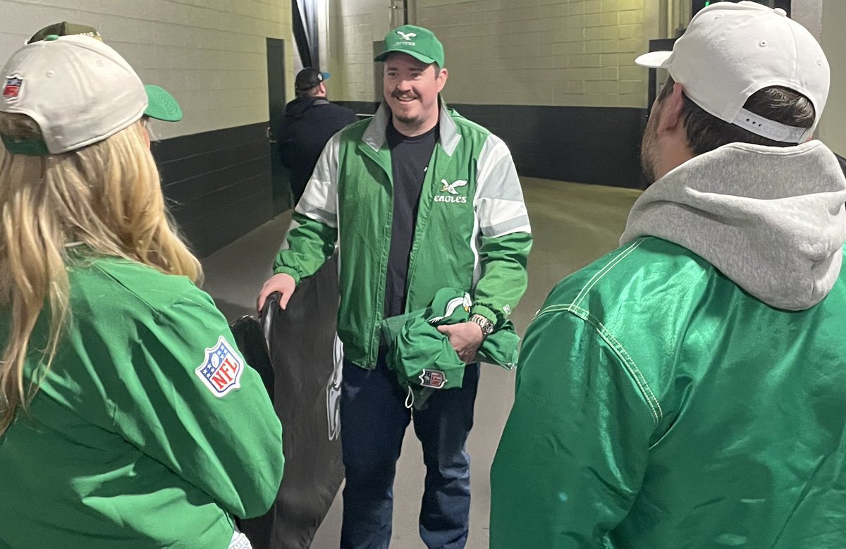 The statement is promotional, highlighting a comedy show by Shane Gillis at a large venue. It focuses on his background as an Eagles fan and the significance of the event. The tone is positive and celebratory, aimed at attracting fans to the show.