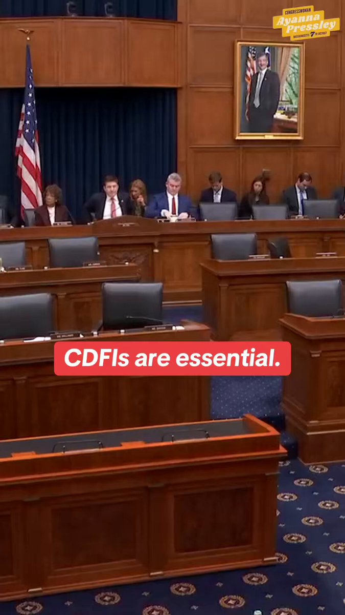 The statement advocates for the protection of Community Development Financial Institutions (CDFIs) and highlights their role in supporting communities and small businesses. It criticizes Republicans for not supporting these institutions, implying a political stance on economic policy.