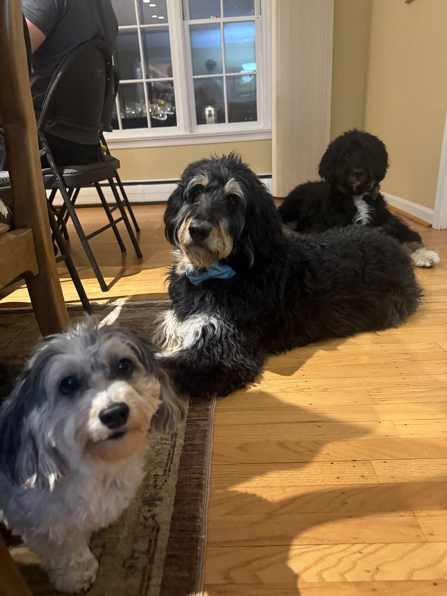The statement is lighthearted and expresses a warm sentiment, wishing others to be with loved ones during Thanksgiving. It includes an image of dogs, which adds to the affectionate tone. The content is positive and intended to spread joy.