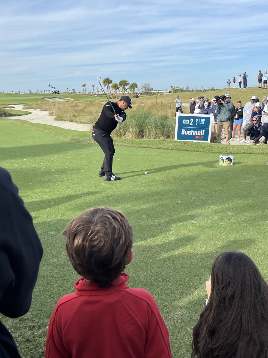 The statement is a lighthearted comment about watching a golf event at a specific venue. It does not engage with public issues or contribute to civic dialogue.