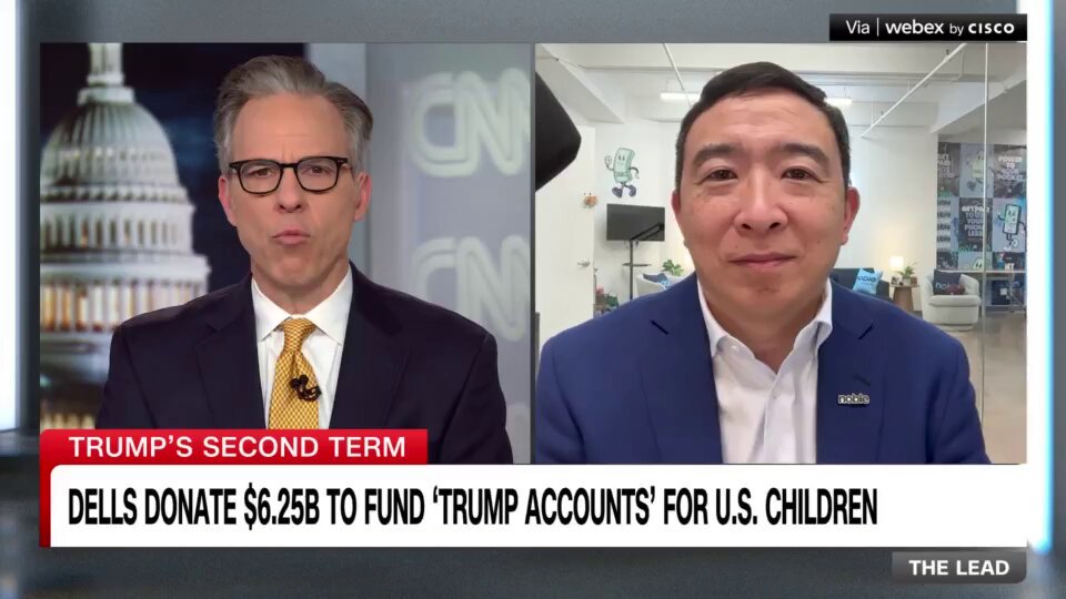 The statement discusses a public policy proposal involving financial accounts for children, which is a public issue. It highlights Andrew Yang's support for the initiative, suggesting a bipartisan approach to economic policy.