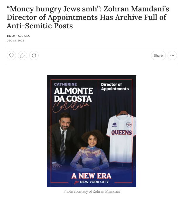 The statement addresses allegations of anti-Semitic behavior by a public figure's appointee, which is a matter of public concern. The tone is accusatory and highlights the deletion of a social media account following the inquiry, suggesting an attempt to avoid accountability.