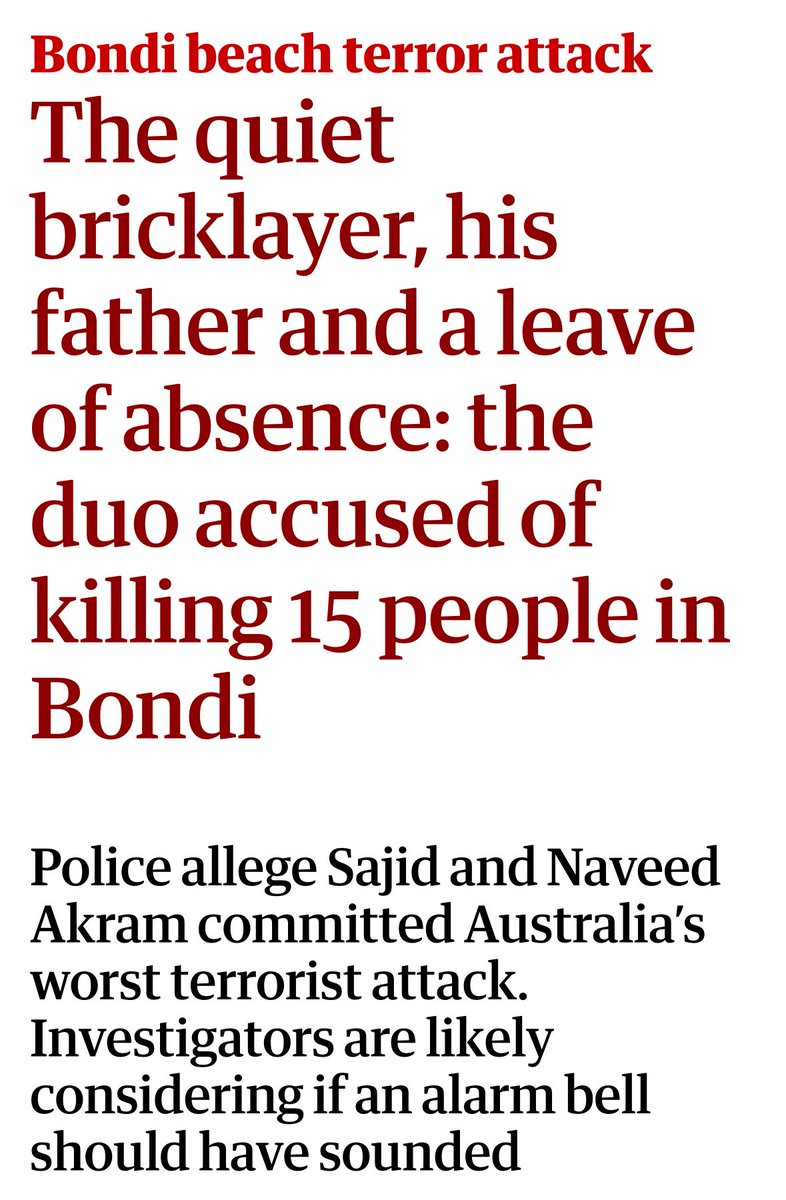 The statement and accompanying headline address a serious public issue, namely a terrorist attack in Bondi. The headline's phrasing, 'The quiet bricklayer,' may be seen as trivializing or sensationalizing the accused individuals, which could be perceived as disrespectful to the victims and their families. The conversation suggests that the headline might not be well-received, indicating potential insensitivity.