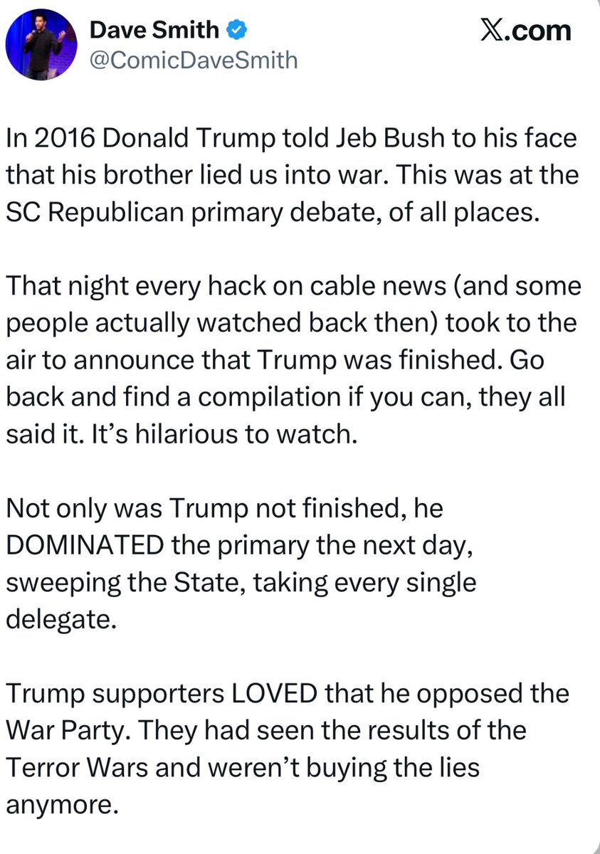 The statement critiques media predictions about Donald Trump's political career, suggesting they were incorrect. It uses a dismissive tone towards media figures, referring to them as 'hacks.' The intent appears to be to highlight perceived media bias and inaccuracies.