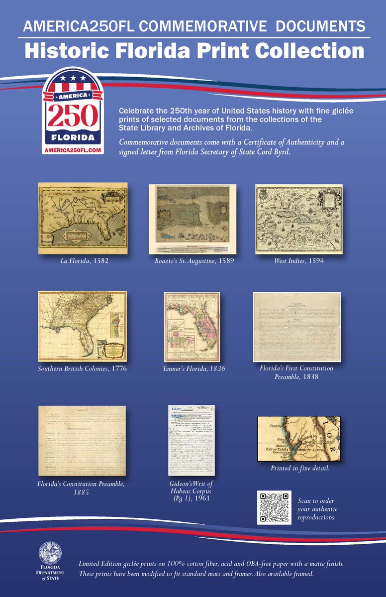 The statement and accompanying image promote commemorative prints celebrating Florida's history as part of the America250FL initiative. This is a promotional activity and does not engage in substantive public discourse on societal issues or policies.