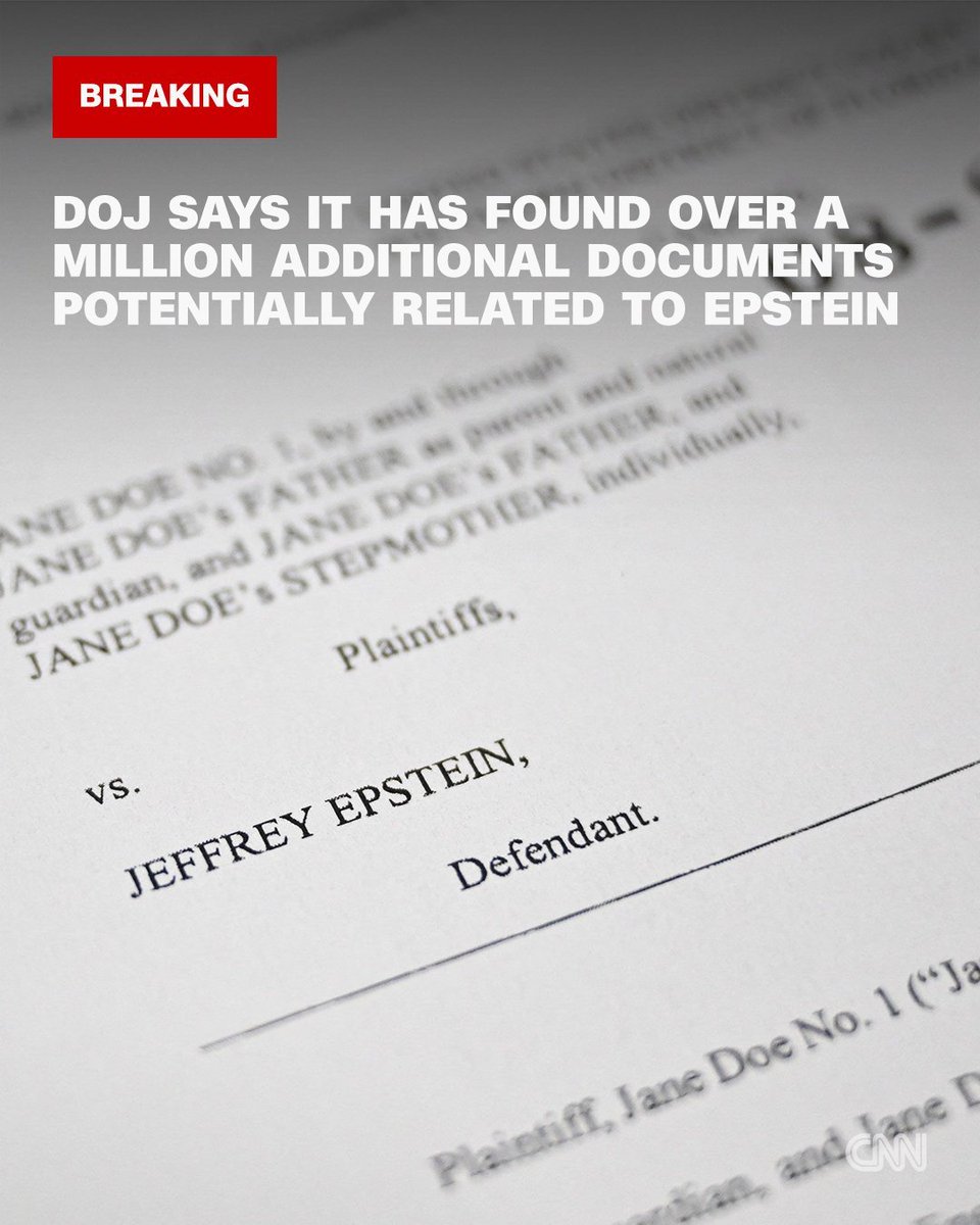 The statement reports on a significant development in the Jeffrey Epstein case, indicating the discovery of over a million additional documents by the Justice Department. This is a factual update on an ongoing legal matter, contributing to public awareness and understanding of the case.