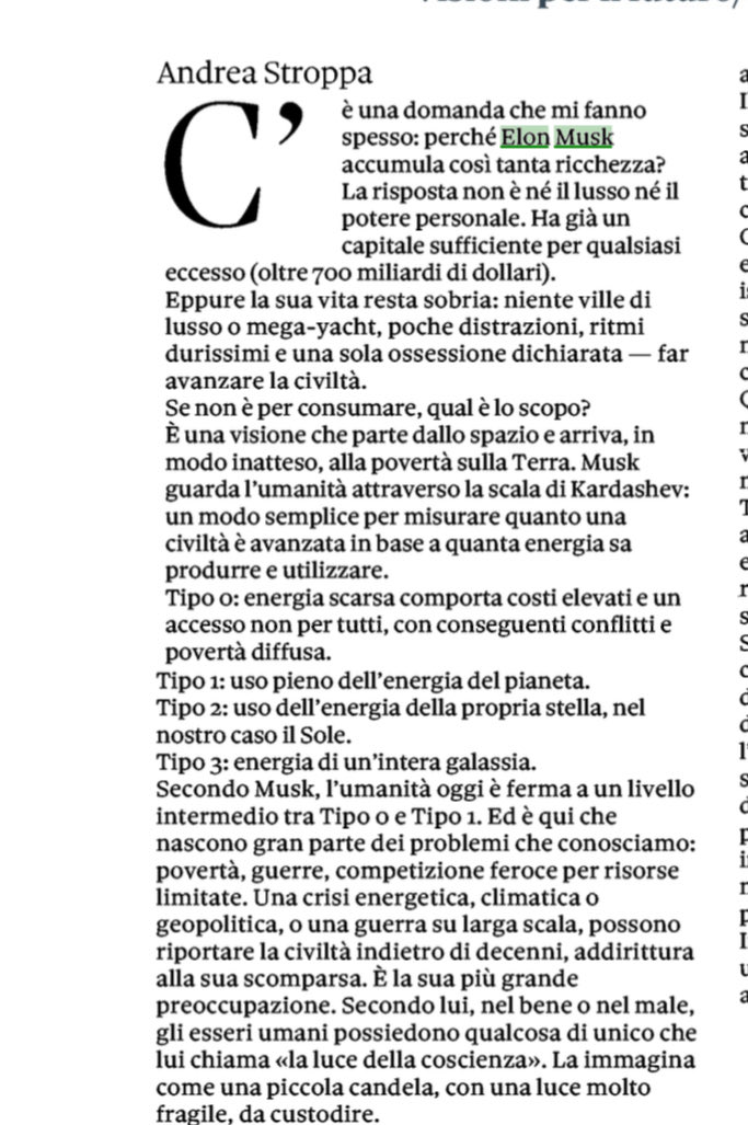 The statement discusses Elon Musk's wealth accumulation and his purported intentions to address global poverty rather than indulge in luxury. It presents Musk's vision of advancing civilization through energy utilization, referencing the Kardashev scale. The tone is analytical and somewhat promotional, focusing on Musk's potential positive impact on society.