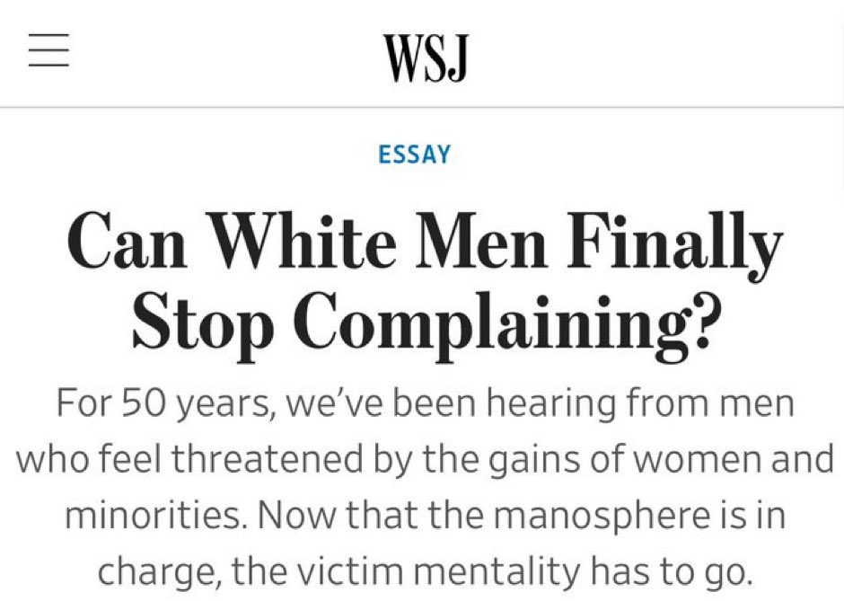 The statement is a response to a discussion about media portrayal of white Christian men, referencing an image with a provocative headline. The tone suggests disagreement with the perceived negative portrayal.