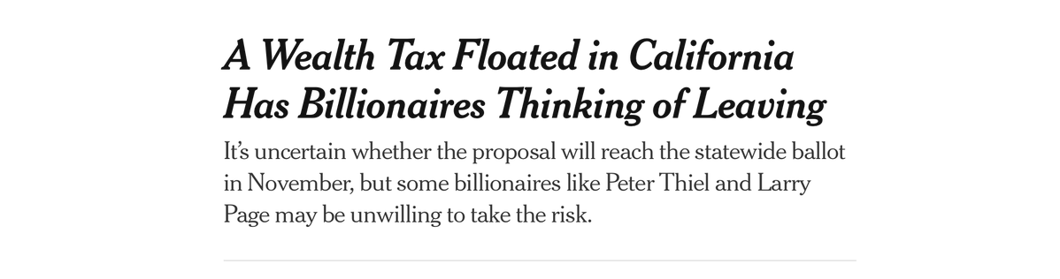 The statement expresses a critical opinion on a proposed tax policy in California, suggesting it will have negative consequences. The tone is sarcastic, implying a lack of confidence in the decision-making process. The image provides context about the potential impact on billionaires.