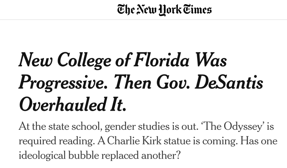 The statement discusses the ideological shift at New College in Sarasota, highlighting a conservative perspective on educational reform. It critiques past inaction by conservatives and praises recent changes aimed at promoting merit, free speech, and classical learning. The accompanying image suggests a shift from progressive to conservative values, raising questions about ideological balance.