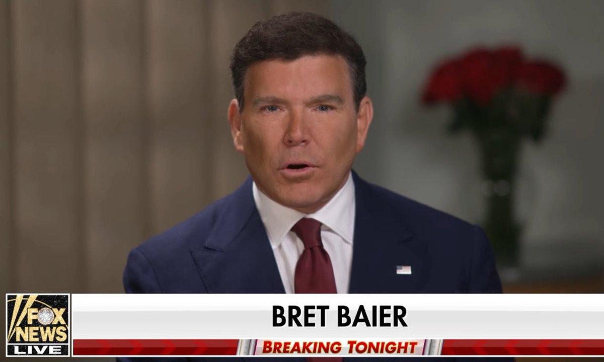 The statement is promotional, announcing a news segment on Fox News with Bret Baier. It does not engage substantively with public issues or debates, and therefore does not constitute public discourse.