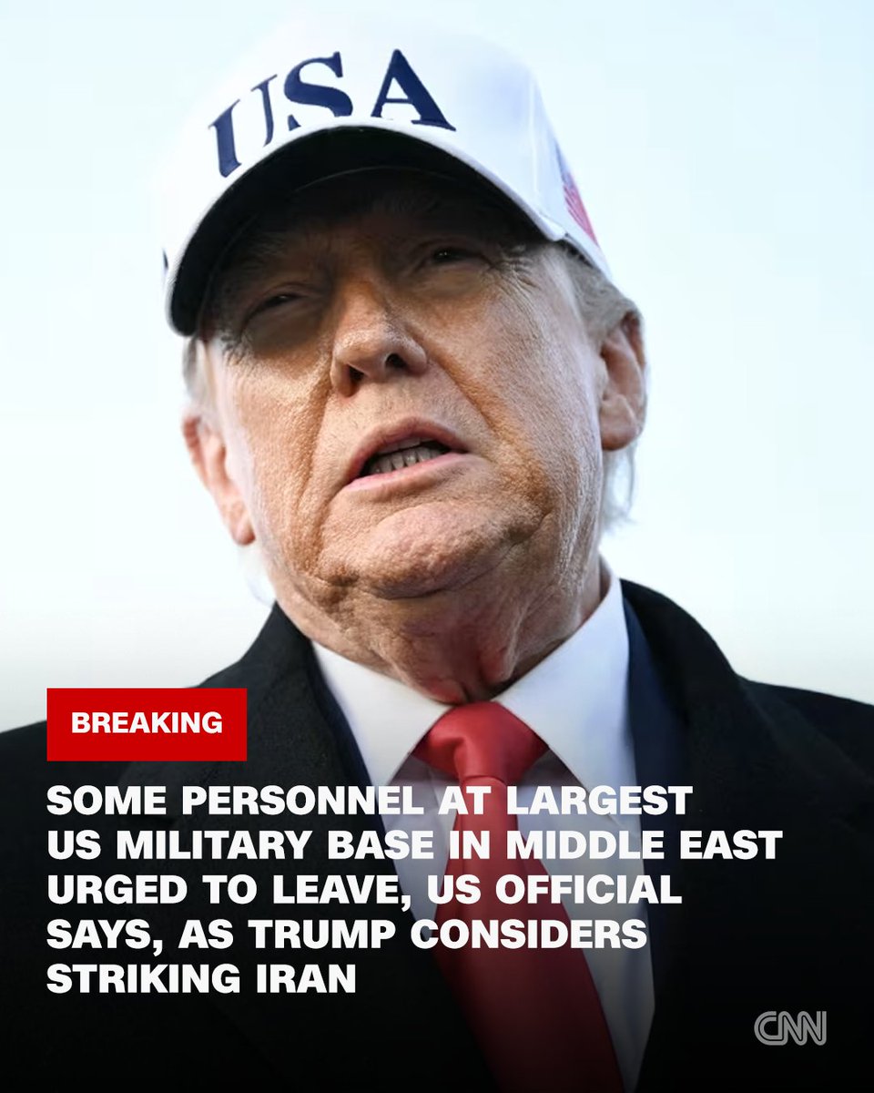 The statement discusses a significant geopolitical issue involving potential military action and international relations, which constitutes public discourse. It reports on a situation where US military personnel are urged to leave a base in the Middle East as a precautionary measure while a potential strike on Iran is considered. The statement is factual and provides information on a developing situation.