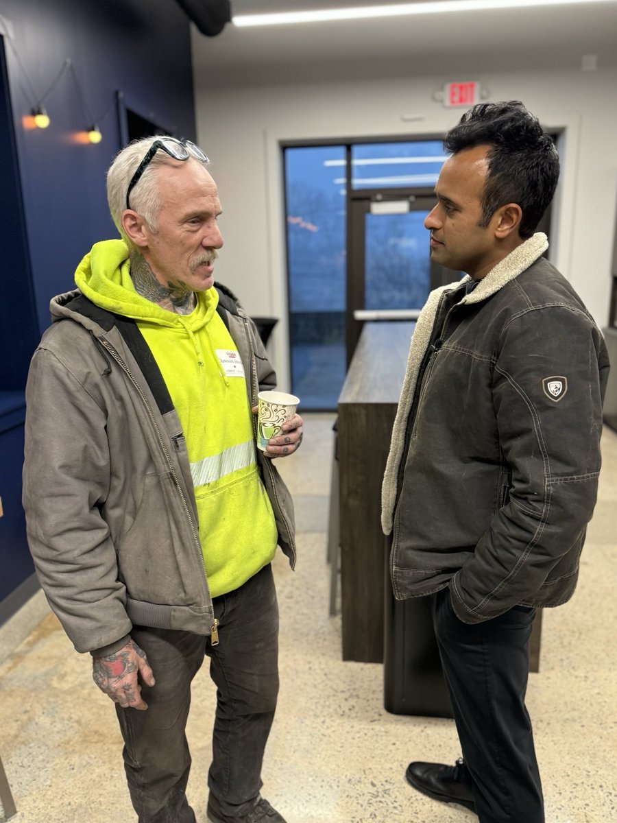 The statement reflects on personal growth and change, using an anecdote about a man who transitioned from being an English professor to a carpenter. It draws a parallel to the open-mindedness of the Founding Fathers, suggesting a positive view of adaptability and diverse experiences.