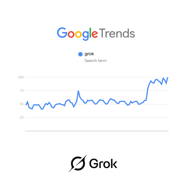 The statement is promotional, highlighting the rising popularity of 'Grok' on Google Trends. It does not engage with public issues or contribute to civic dialogue.