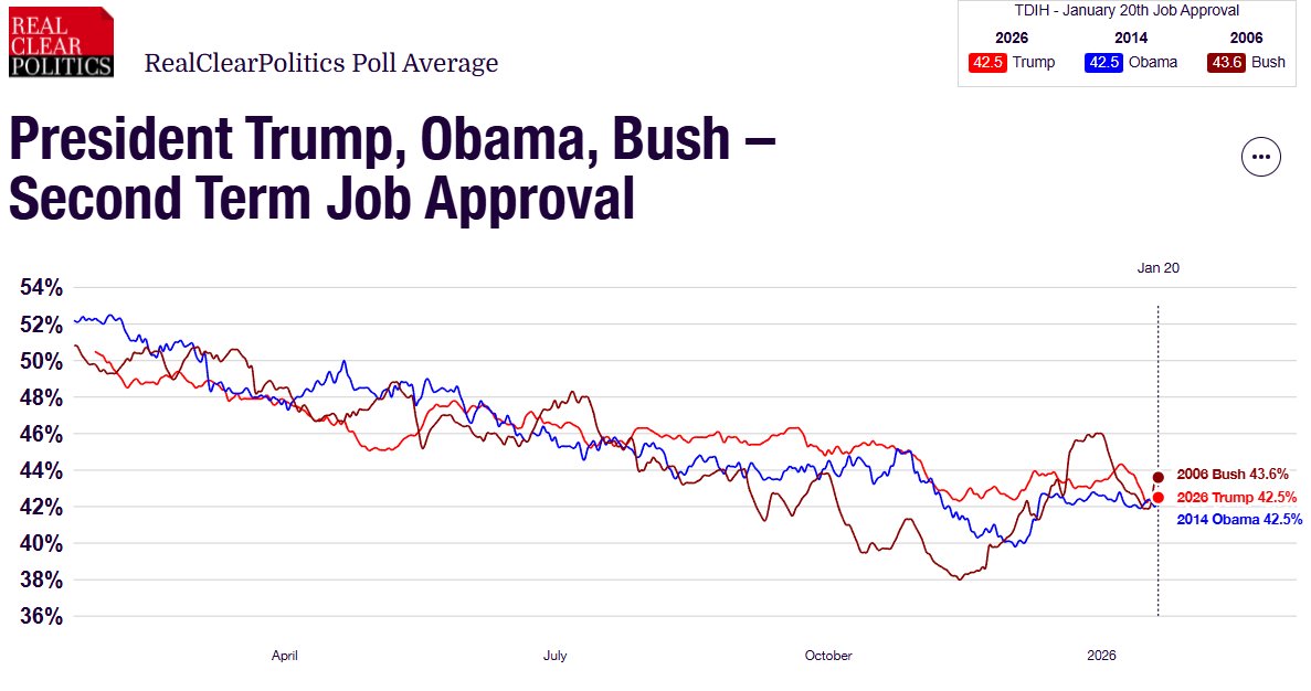 The statement presents a comparison of presidential approval ratings one year into their second terms, focusing on Bush, Obama, and Trump. It provides factual data without expressing opinions or engaging in personal attacks.