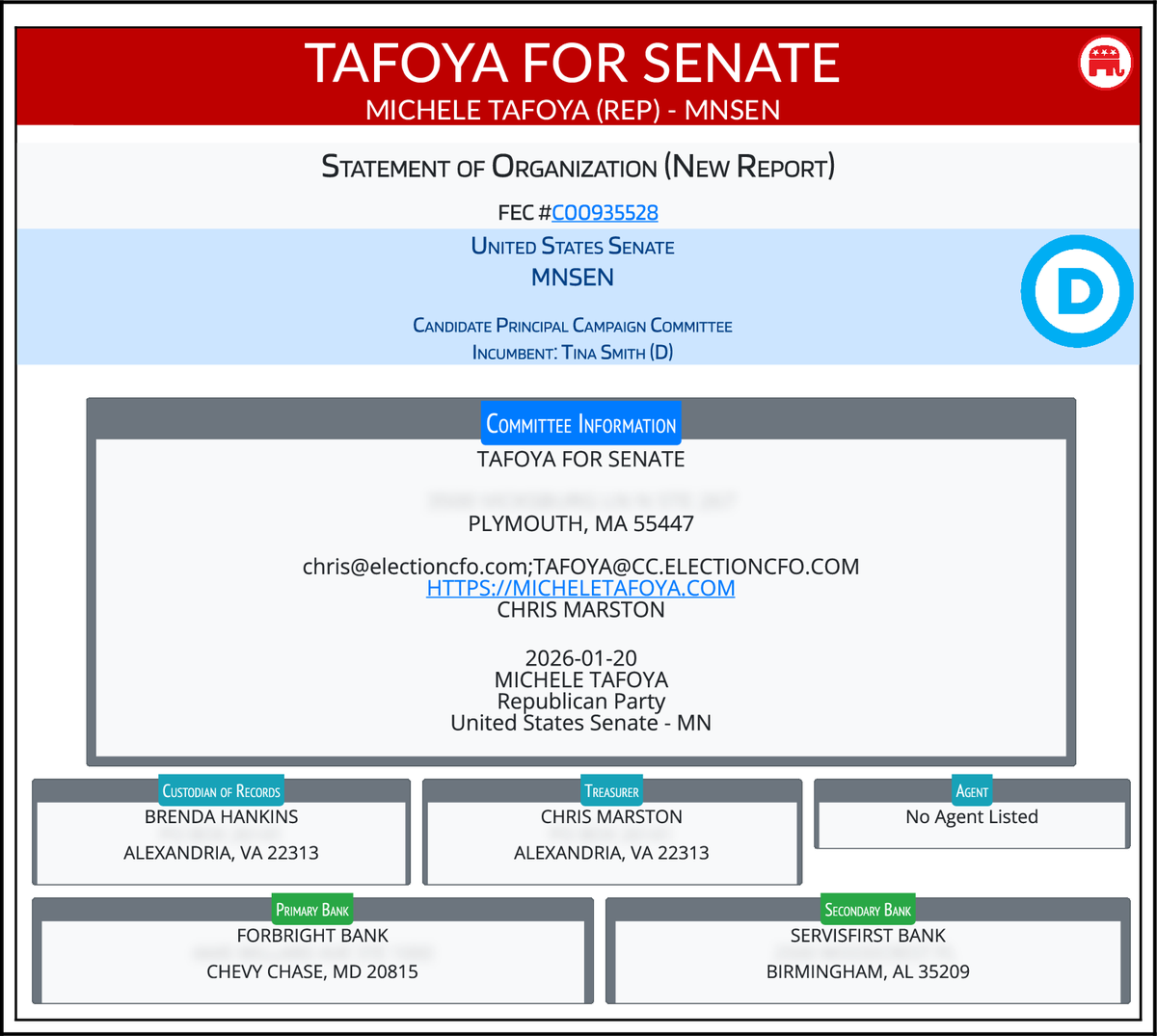 The statement provides information about Michele Tafoya filing paperwork to run for the US Senate in Minnesota as a Republican. It is factual and relates to public discourse as it involves a political campaign and election process.