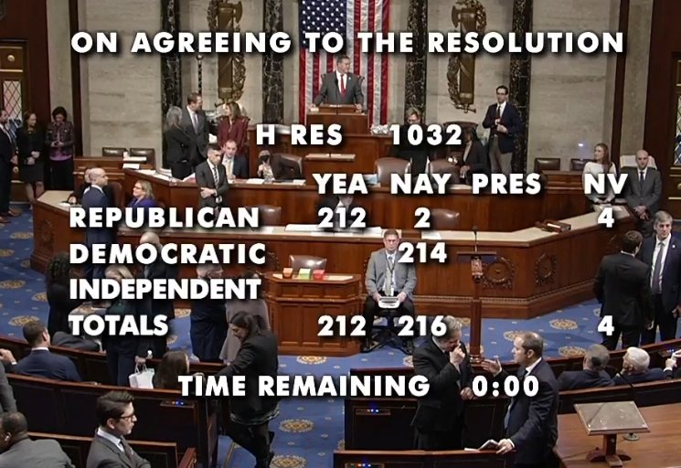 The statement discusses a political event involving a funding bill vote in the U.S. House of Representatives, indicating a shift in party dynamics due to specific members voting against the party line. The image provides visual confirmation of the vote outcome, highlighting the narrow margins and the bipartisan nature of the vote.