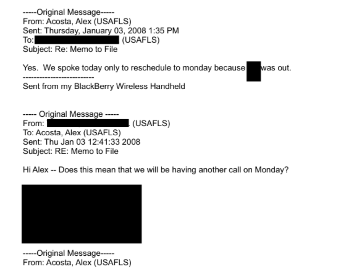The statement questions the legal basis for redacting names of DOJ attorneys in the Epstein files, indicating a concern for transparency and accountability in legal proceedings. It references a journalist's findings, suggesting an investigative approach to uncovering details about the case.