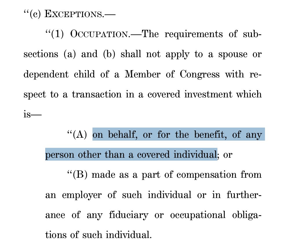 Bill is a set of new vehicles and loopholes written by and for the wealthiest members of Congress to evade tracking of their trades.