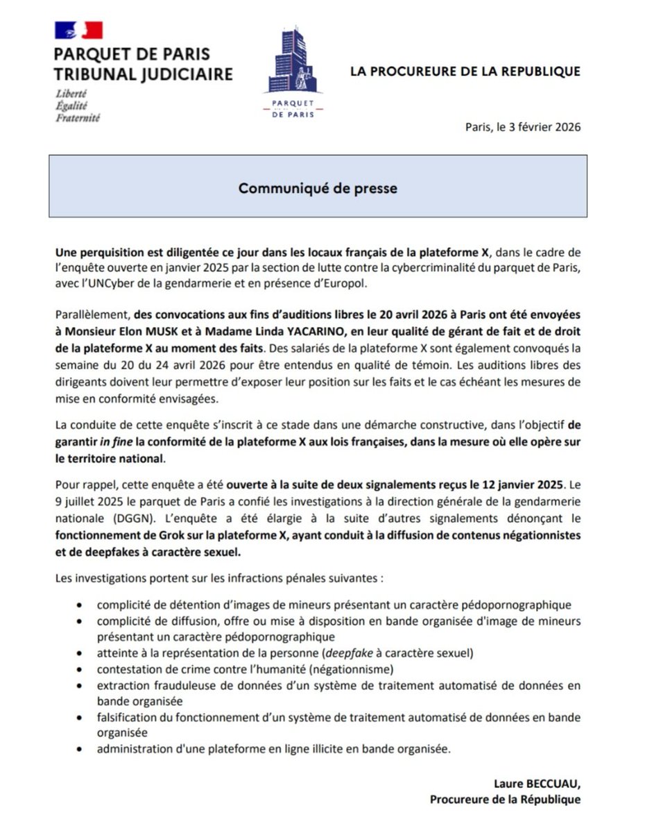 Le communiqué du Parquet de Paris à propos des poursuites pénales engagées à l'encontre d'@elonmusk est un fourre-tout pénal sans queue ni tête.