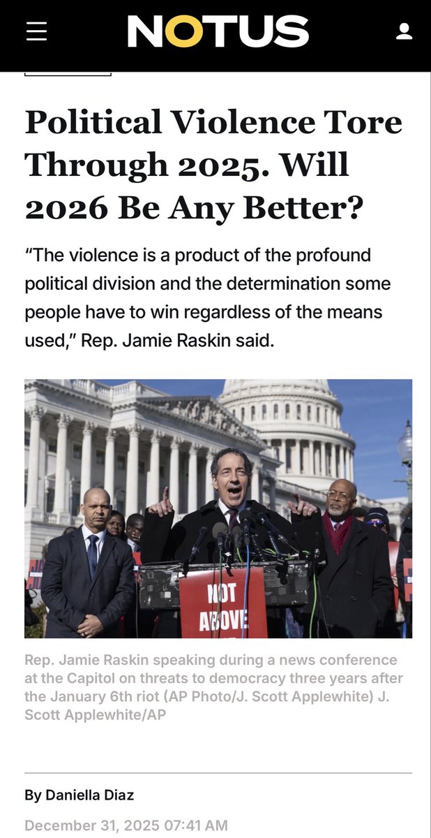 For the end of the year, I wrote about how terrible political violence was in 2025 in the United States — and how the environment isn’t showing any signs of it getting better.